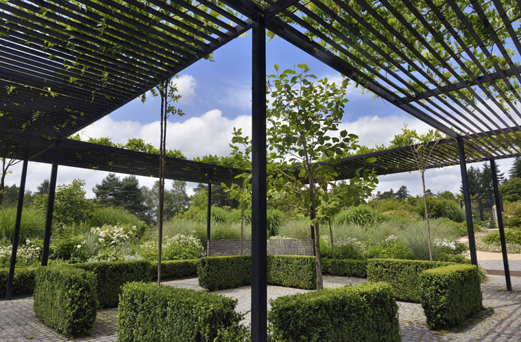 En continuité avec une habitation, ici avec la boutique, ces jardins font le lien entre l’intétrieur et l’extérieur.